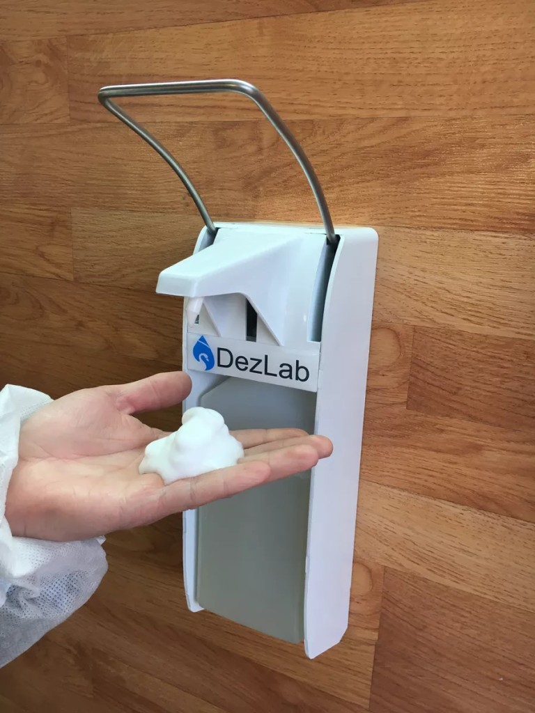 Дозатор локтевой настенный Диспоинт 1000 Пена для жидкого мыла пена и антисептик пена. Диспоинт 1000 Пена, выдает порцию душистой нежной пены, стоит только поднести руку и нажать на рычаг.